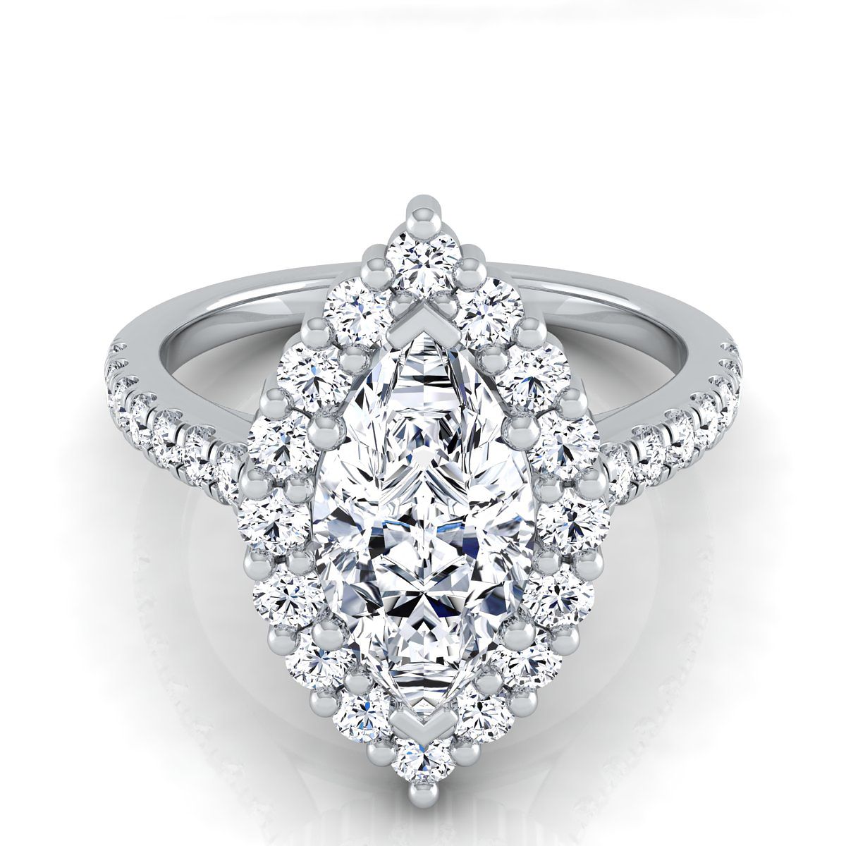 แถลงการณ์สไตล์ที่สง่างาม แหวนหมั้นมาร์คีสฮาโลนี้พร้อมชิ้นเพชรประดับเพฟแสดงให้เห็นเพชรเจียระไนแบบบริลเลียนต์ (h-i/vs 0.65ctw) ที่ตั้งไว้อย่างสวยงามในตัวเรือนแพลตตินัมคลาสสิก