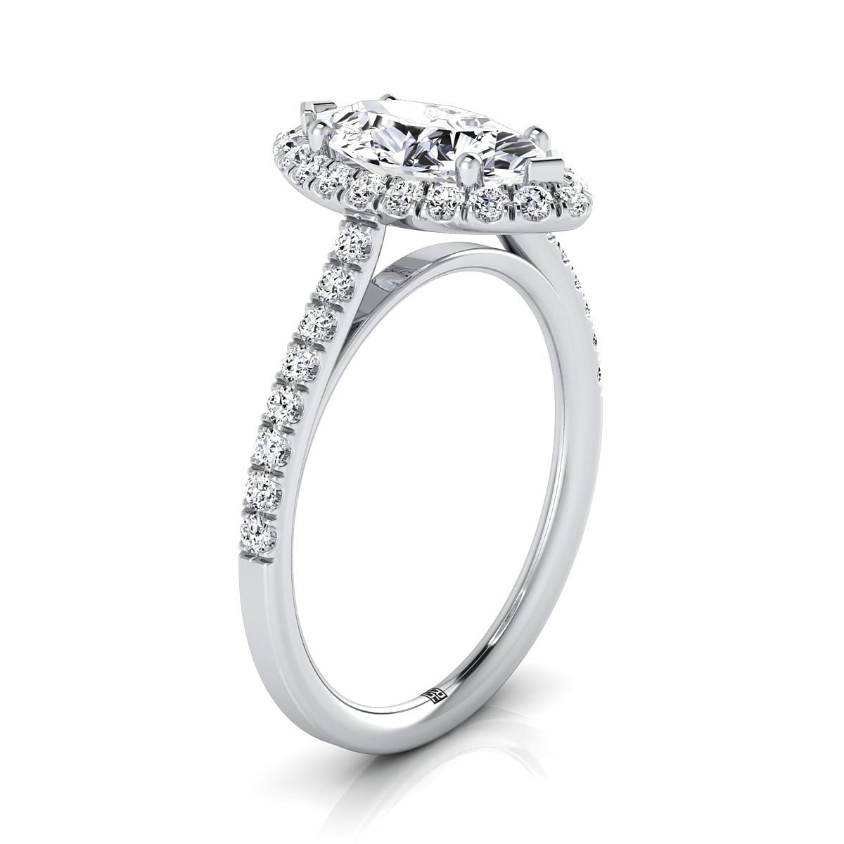 แหวนหมั้นเพชรทรงมาร์คีส์ขนาดเล็กแบบฮาโล่ฝรั่งเศสประดับเพชร 14K ทองคำขาว - 3/8ctw