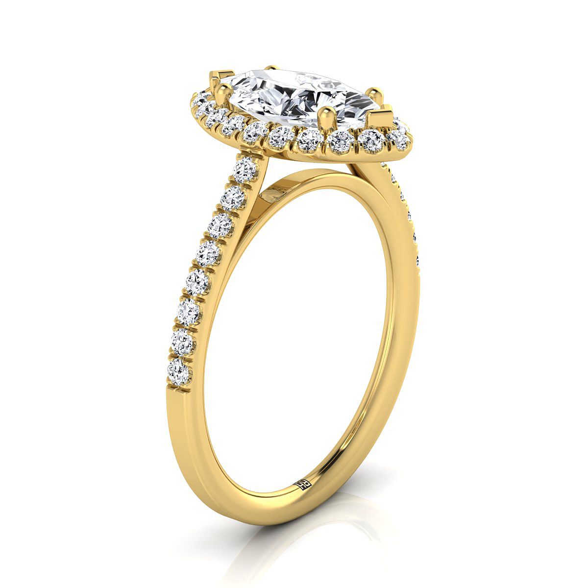 แหวนหมั้นทองคำเหลือง 14K รูปมาร์คีส์ เพชรขนาดเล็กแบบฮาโล่ ฝรั่งเศสปาเว่ - 3/8 กะรัตรวม