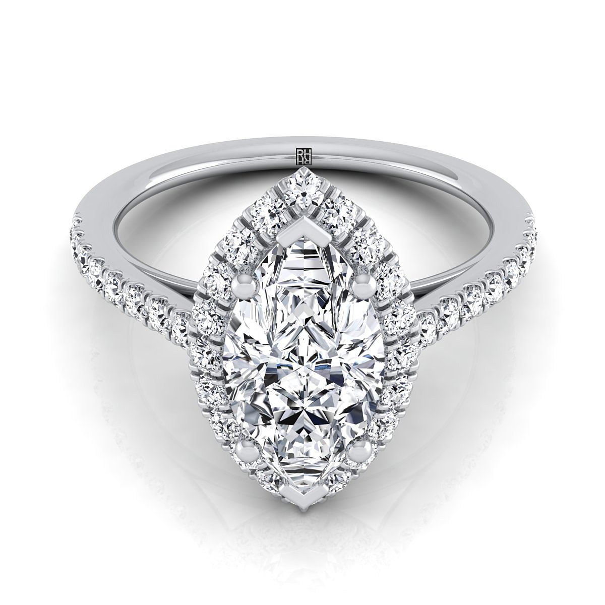 แหวนหมั้นเพชรแพลทินัมมาร์คีสขนาดเล็กแบบฮาโลฝรั่งเศสปาเว - 3/8ctw