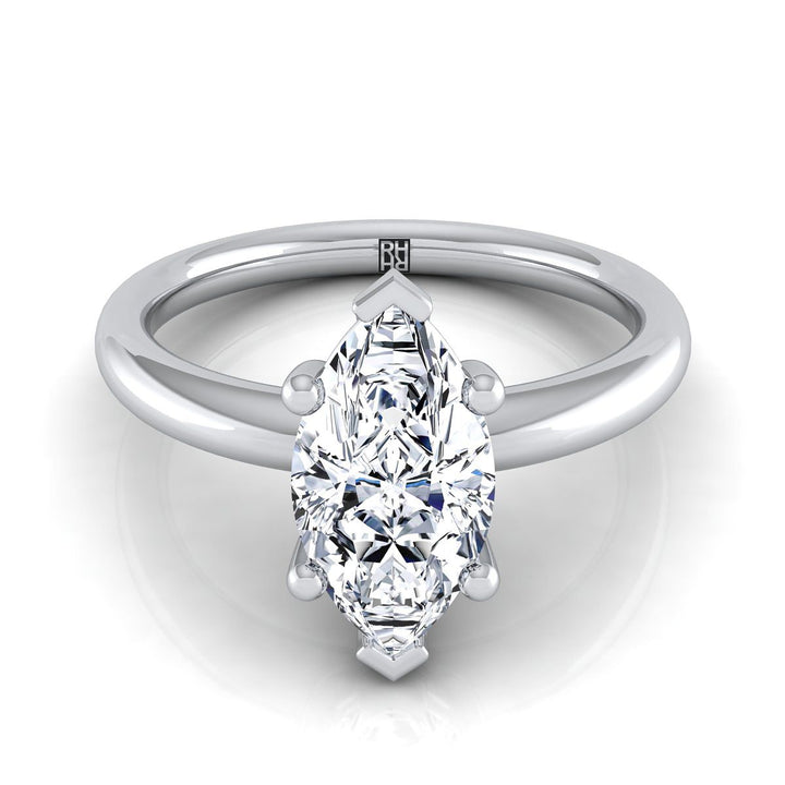 แหวนหมั้นเดี่ยวทรงมาร์คีส์ทองคำขาว 14K แบบโค้งสวมใส่สบาย