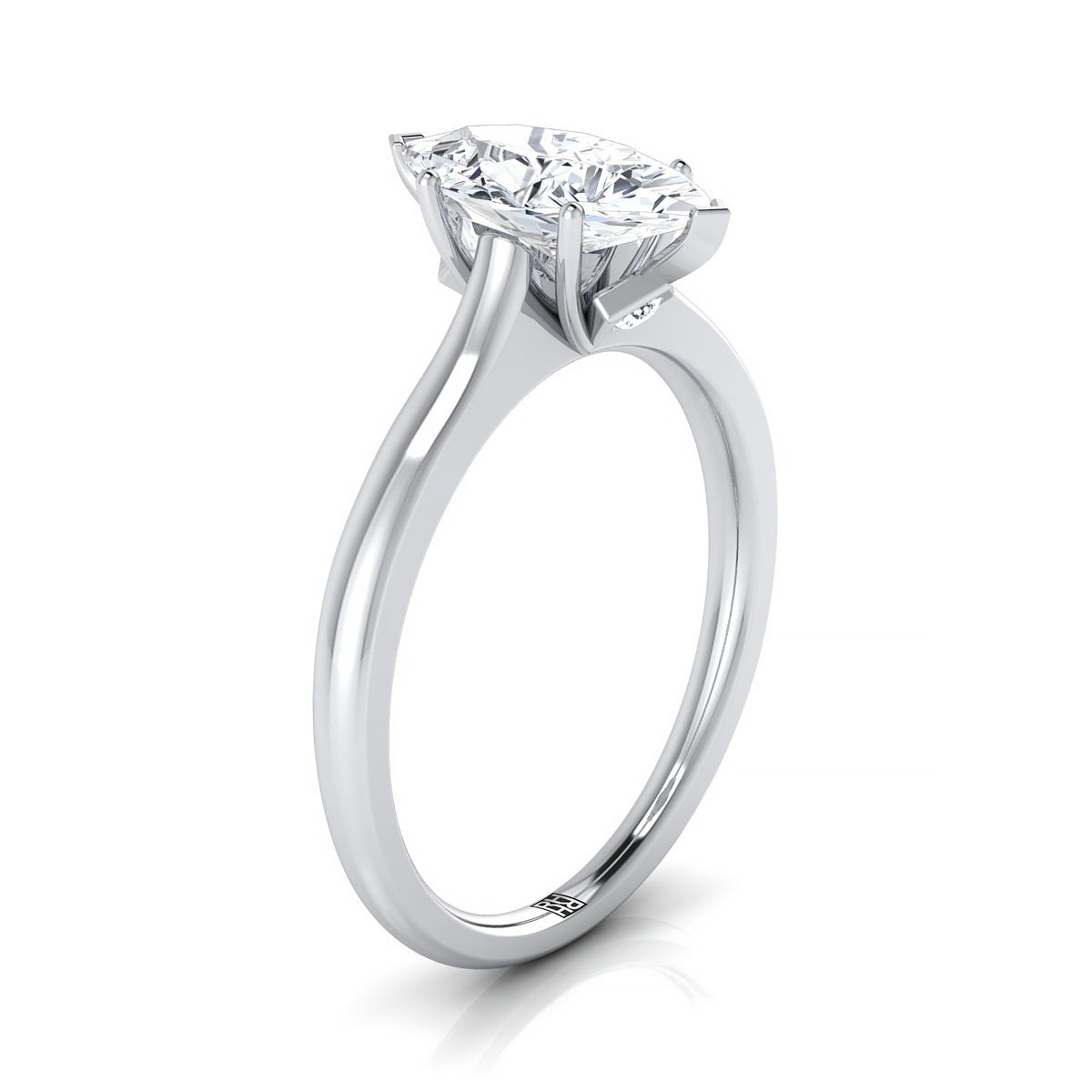 ความสง่างามที่เรียบง่าย แหวนหมั้นเพชรมาร์คีสนี้นำเสนอการออกแบบเพชรแบบติดตั้งแบบขอบพร้อมกับการตกแต่งผิวมันเงาคลาสสิกในแพลทินัม