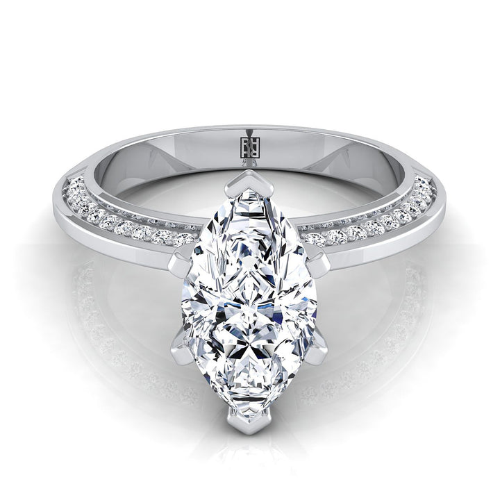 แหวนหมั้นเพชรเม็ดกลางทรงมาคีส์คลาสสิก พร้อมแกลเลอรีแบบขอบมีดที่ประดับด้วยเพชรเจียระไนแบบบริลเลียนท์ (h-i/vs 0.20ctw) ที่ประดับอย่างสวยงามในตัวเรือนทองคำขาว 14 กะรัตที่สง่างาม