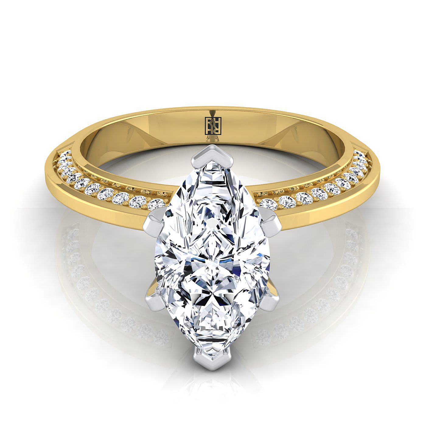 แหวนหมั้นเพชรทรงมาร์คีส์ขอบมีดไมโครเพฟ 18K ทองคำเหลือง - 1/5 กะรัตรวม