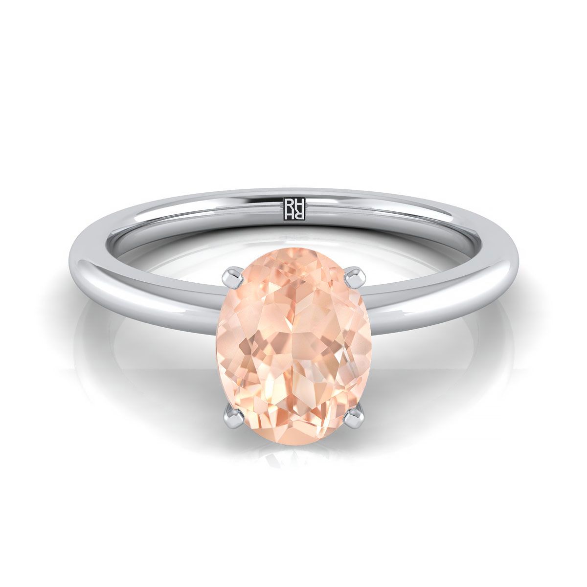 แหวนหมั้นเดี่ยวแบบหนีบก้ามปูทรงวงรีมอร์แกไนต์สีชมพู น้ำหนัก 18K ทองคำขาว แบบสวมใส่สบายทรงกลม