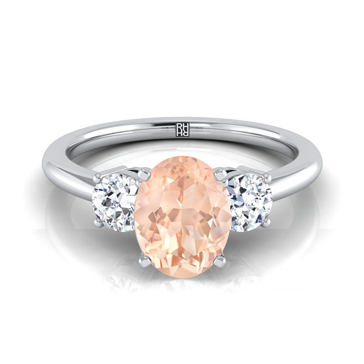 แหวนหมั้นเพชรสามเม็ดทรงกลมที่เข้าคู่กันอย่างสมบูรณ์แบบ ประกอบด้วยมอร์กาไนต์รูปไข่ทองคำขาว 18K - 1/4ctw
