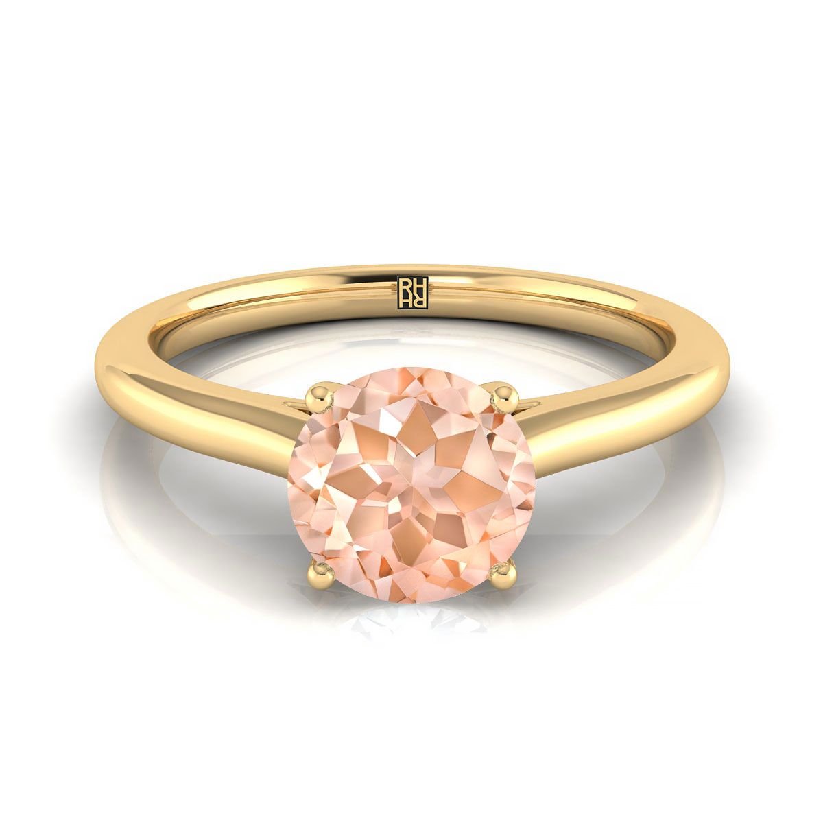 แหวนหมั้นเดี่ยวแบบหนีบด้วยกรงเล็บทรงกลมเจียระไนแบบ Brilliant จากมอร์กาไนต์ทองคำเหลือง 14K แบบสวมใส่สบาย