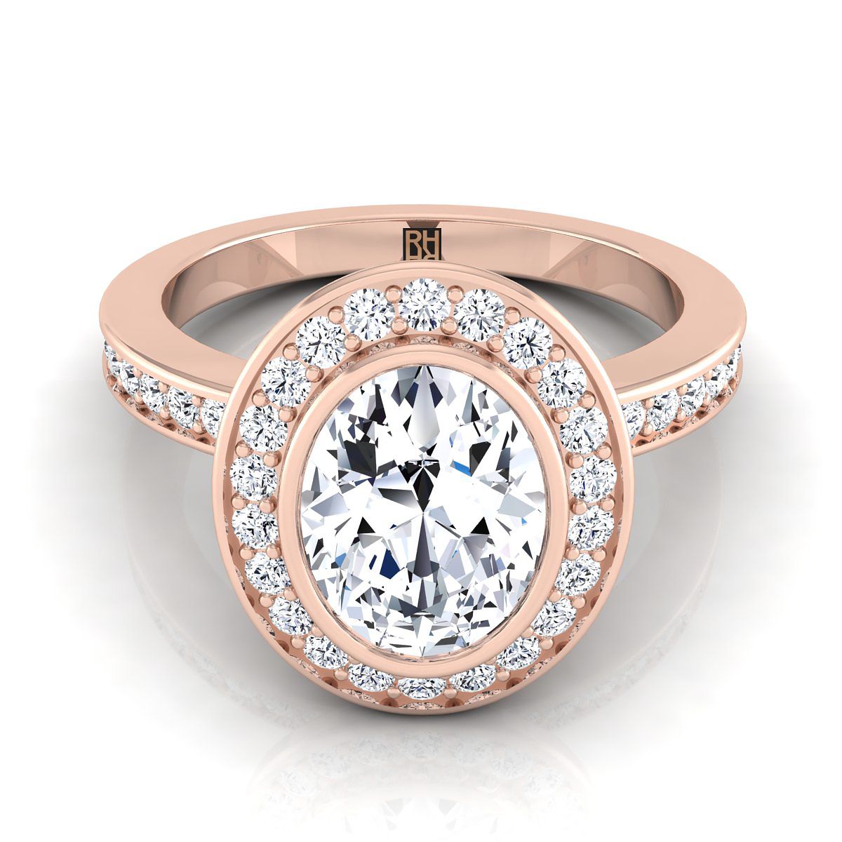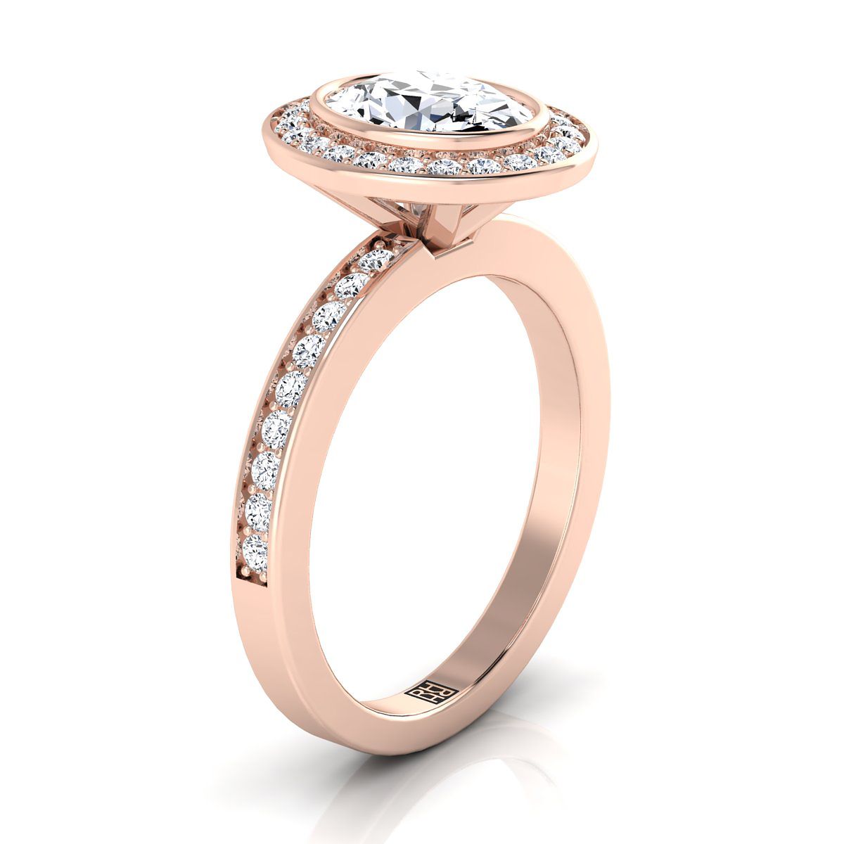 แหวนหมั้นทองคำชมพู 14K รูปไข่ ประดับเพชรแบบฮาโลและแถบช่อง - 3/8 กะรัตรวม