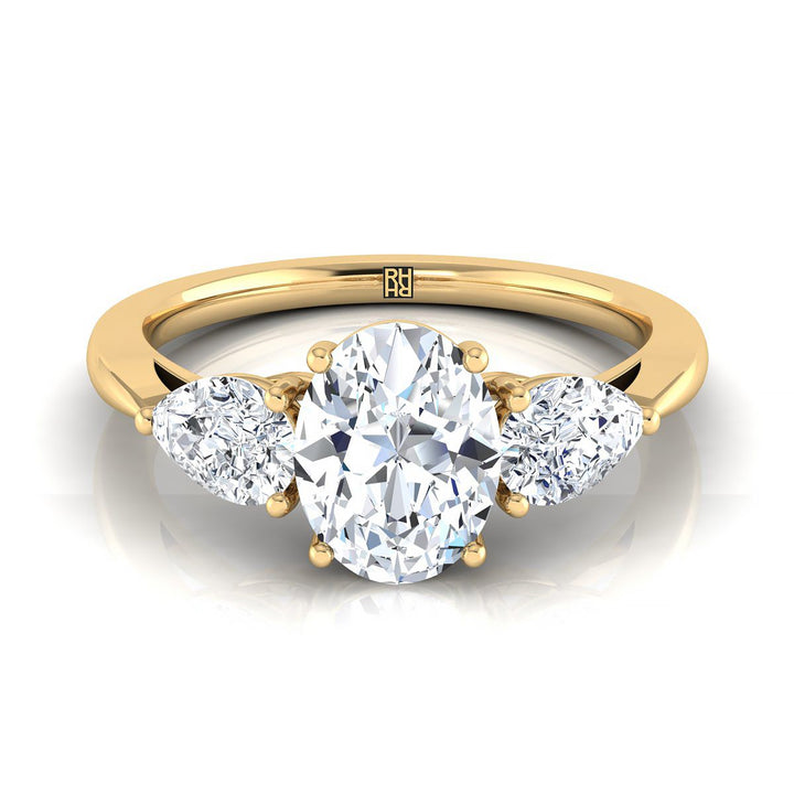 แหวนหมั้นเพชรรูปทรงลูกแพร์สามเม็ดที่เข้าคู่กันอย่างสมบูรณ์แบบ ทองคำเหลือง 18K รูปไข่ - 7/8ctw