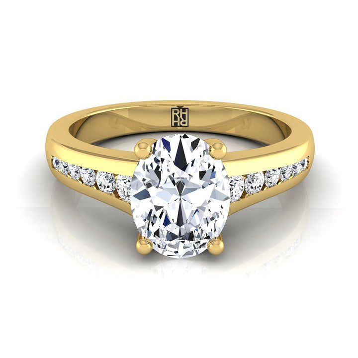 ผลิตด้วยมืออย่างประณีตในทองคำแท้ 18k สีเหลือง แหวนหมั้นเพชรทรงรีแบบติดตั้งช่อง (h-i/vs 0.17 กะรัตรวม) นี้สร้างการตั้งค่าที่สมบูรณ์แบบสำหรับเพชรเม็ดเดียวคลาสสิกที่จะคงอยู่ตลอดชีวิต