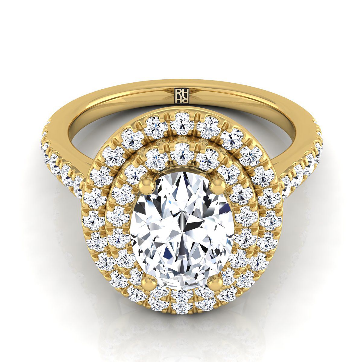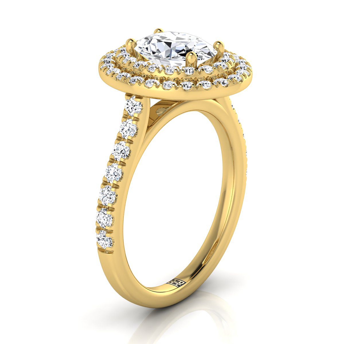 แหวนหมั้นเพชรทรงรี 18K ทองเหลืองสองชั้นแบบพาเว่พร้อมเพชรเส้นตรง - 7/8 กะรัตรวม