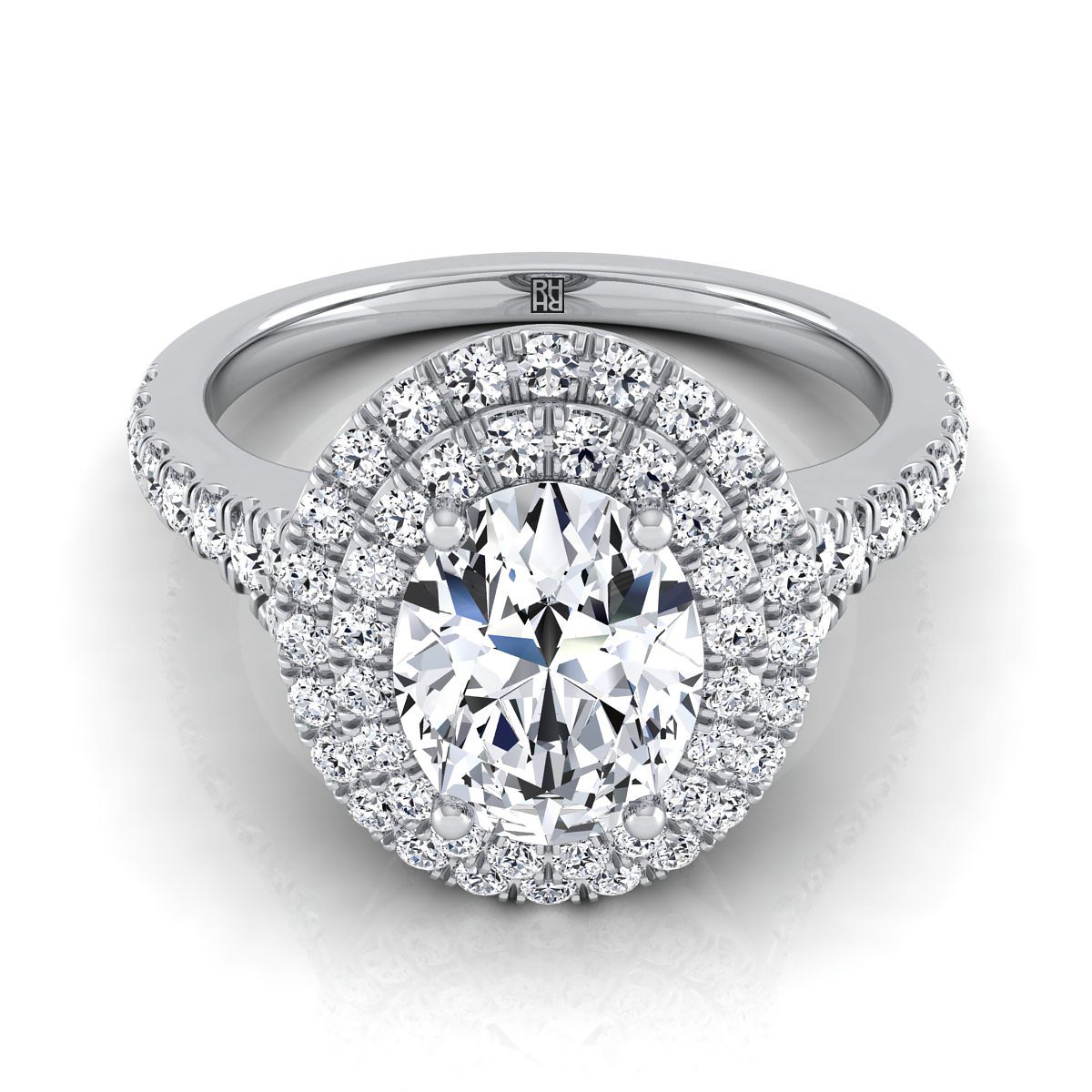 แถลงการณ์สไตล์ที่สง่างาม แหวนหมั้นรูปไข่แบบดับเบิลฮาโลนี้แสดงให้เห็นเพชรเจียระไนแบบบริลเลียนต์ (h-i/vs 0.55ctw) พร้อมกับแถบเพฟที่ประณีต ติดตั้งในตัวเรือนทองคำขาว 14 กะรัต
