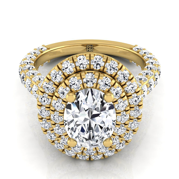 แหวนหมั้นทองคำเหลือง 18K รูปไข่ ประดับเพชรหนาและหรูหราพร้อมวงแหวนคู่แบบฝรั่งเศสปาเว่ - 2ctw