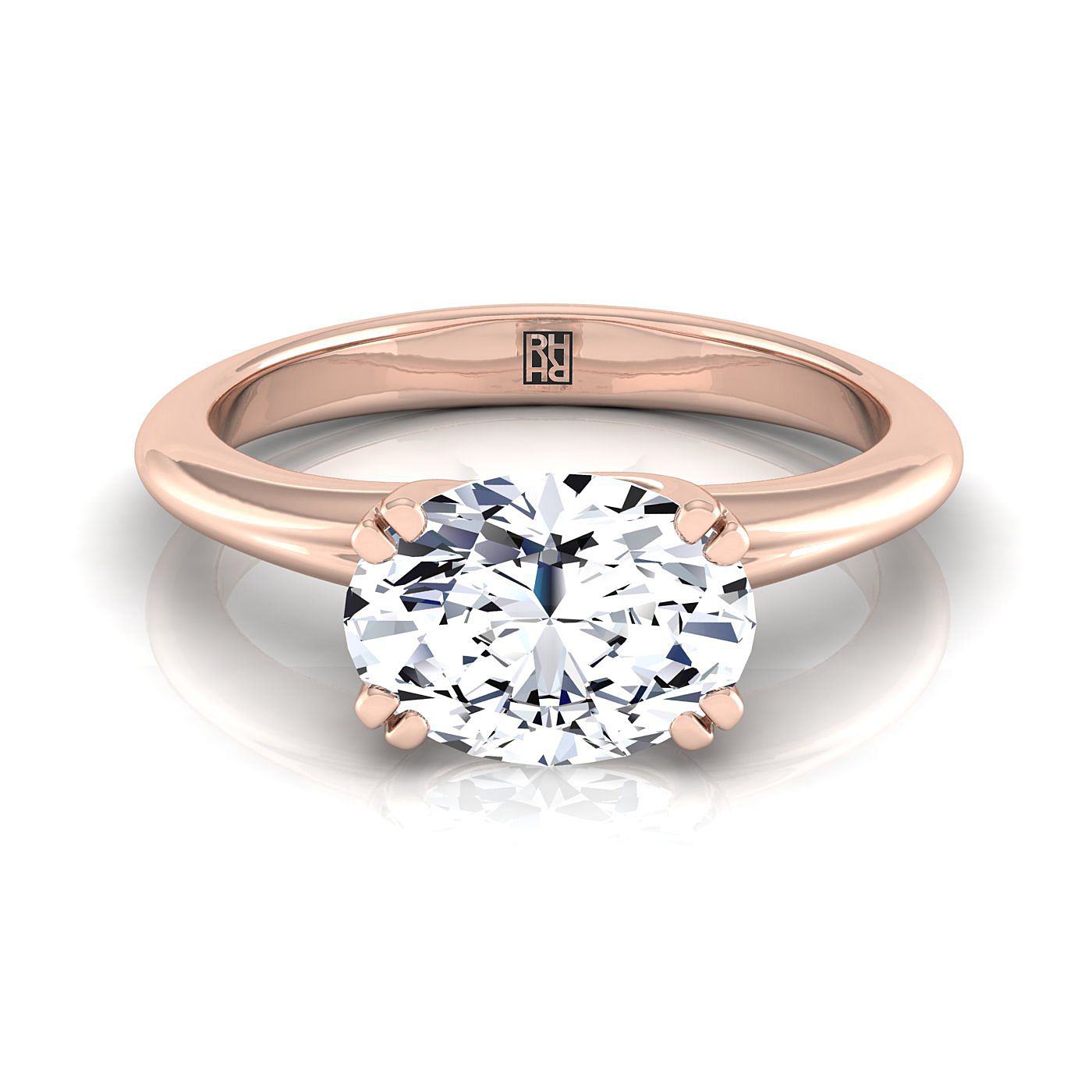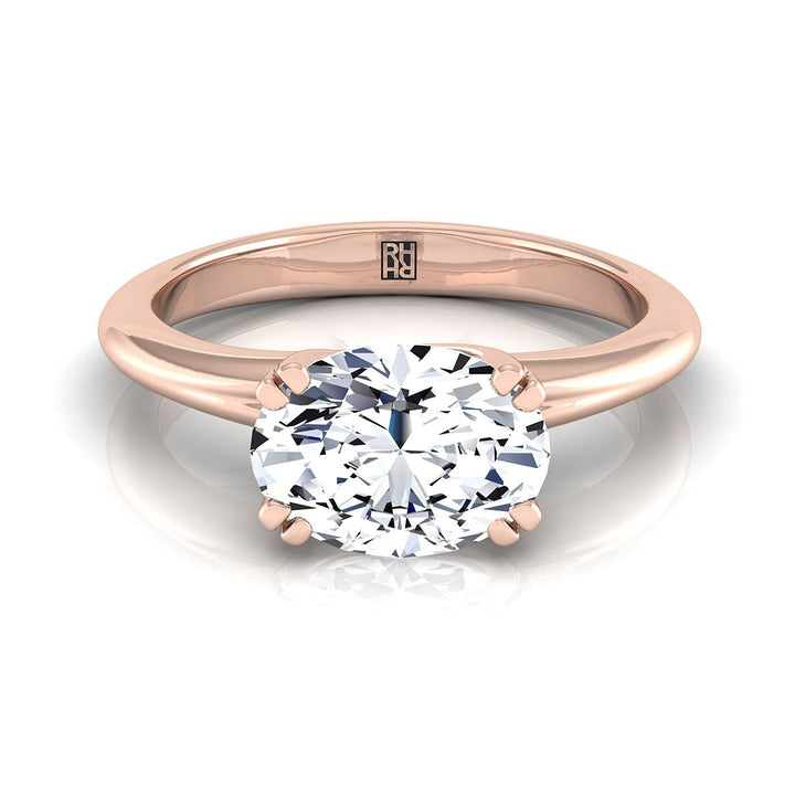 แหวนหมั้นเดี่ยวแบบสบายมือรูปวงรีทิศตะวันออก-ตะวันตกทองกุหลาบ 14K แบบแปดกรงเล็บ