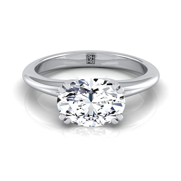 แหวนหมั้นเดี่ยวแบบสบาย 18K ทองคำขาวรูปไข่ ตะวันออก-ตะวันตก แปดกรงเล็บ