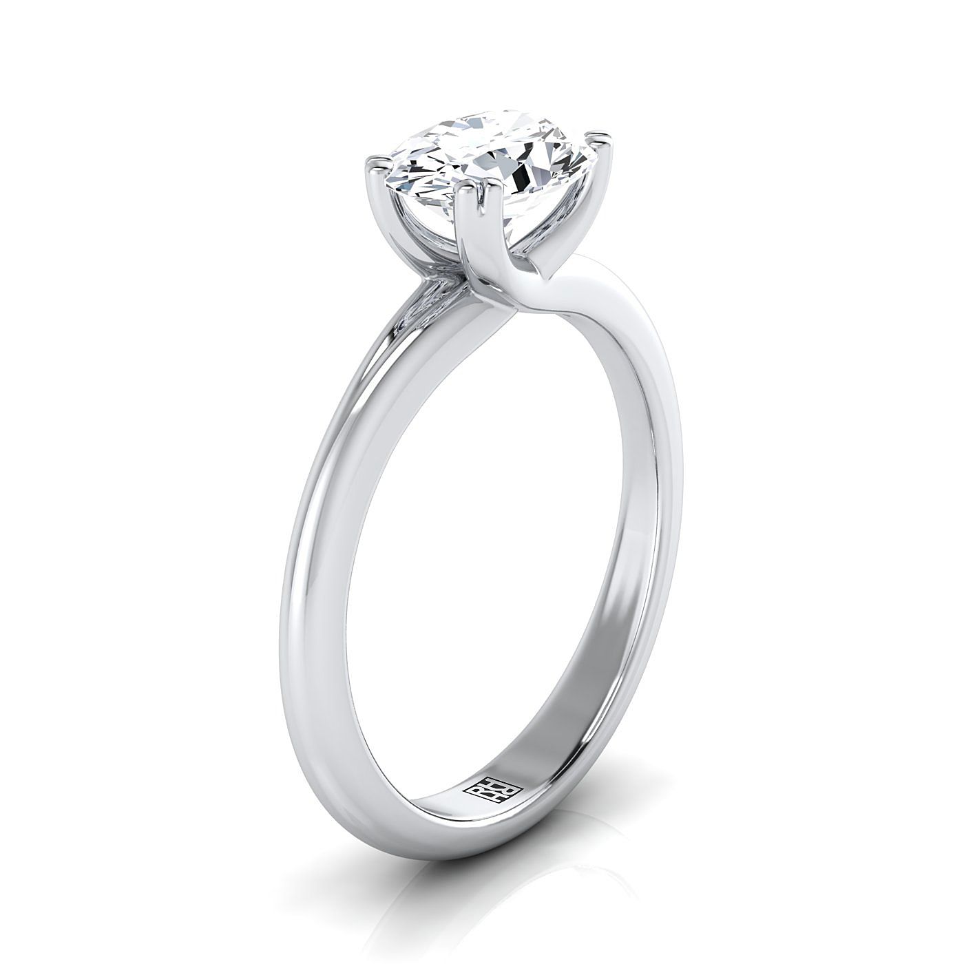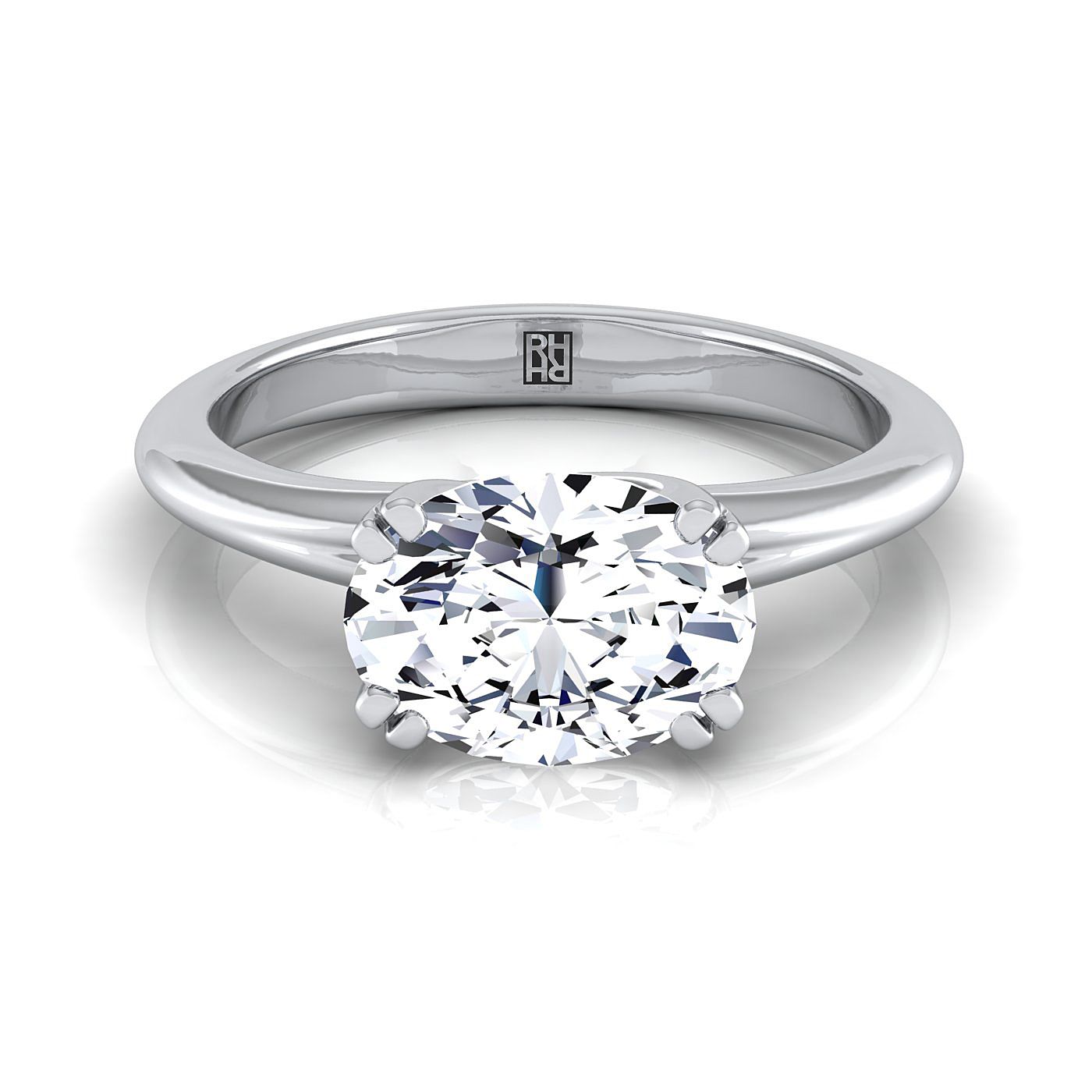 แหวนหมั้นเดี่ยวแบบสบายขนาดพอดีรูปวงรีแพลทินัมแบบตะขอแปดกรงแบบตะวันออก-ตะวันตก