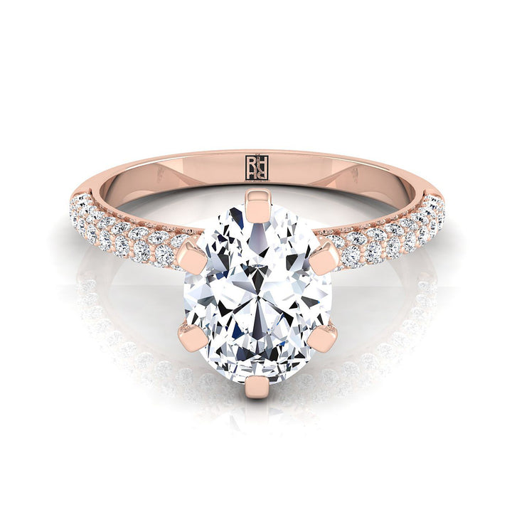 แหวนหมั้นเรียบง่ายสามแถวฝรั่งเศสประดับเพชรวงรีทองกุหลาบ 14K - 1/3ctw