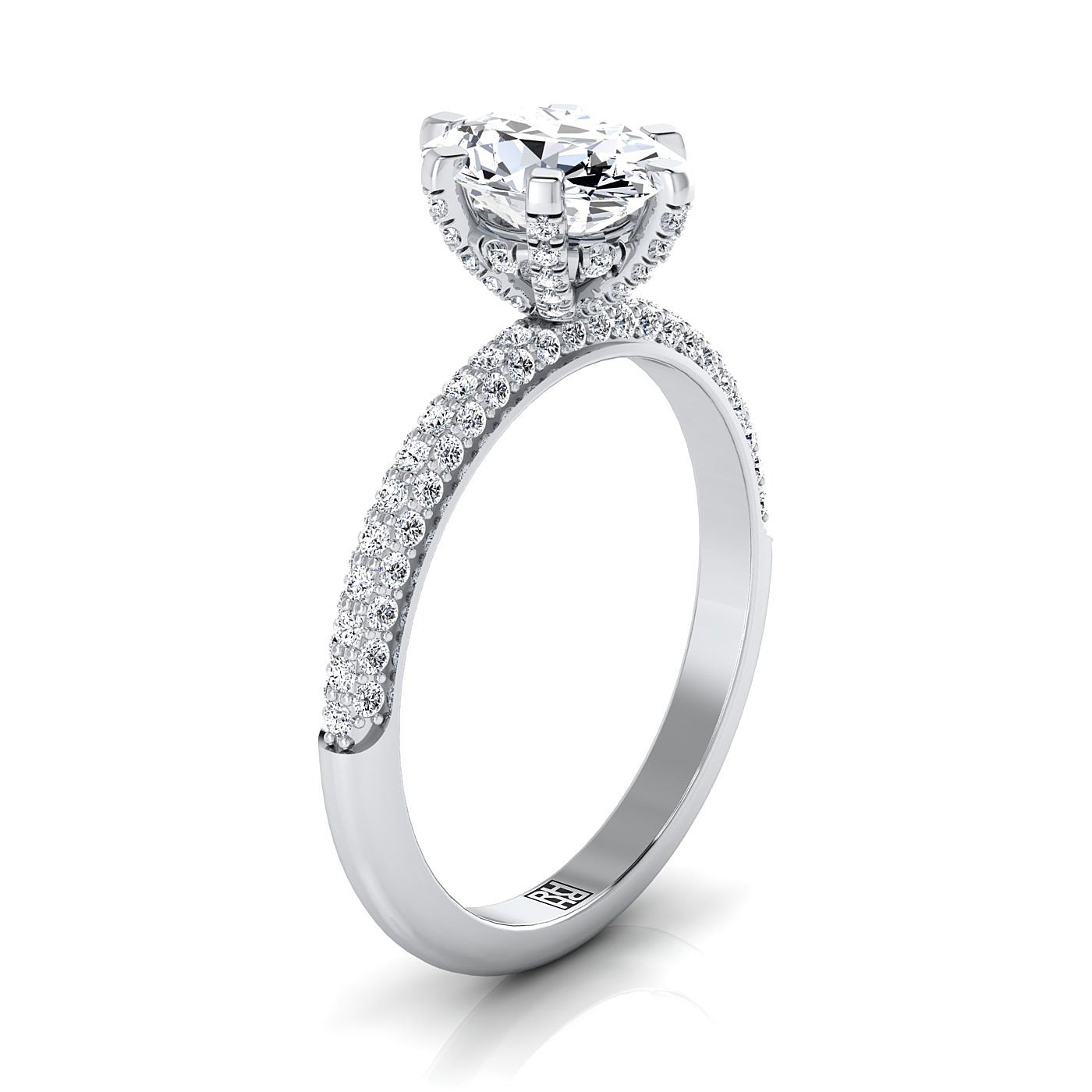 แหวนหมั้นเรียบง่ายฝรั่งเศสประดับเพชรวางเรียงสามแถวรูปไข่ทองคำขาว 14K - 1/3ctw