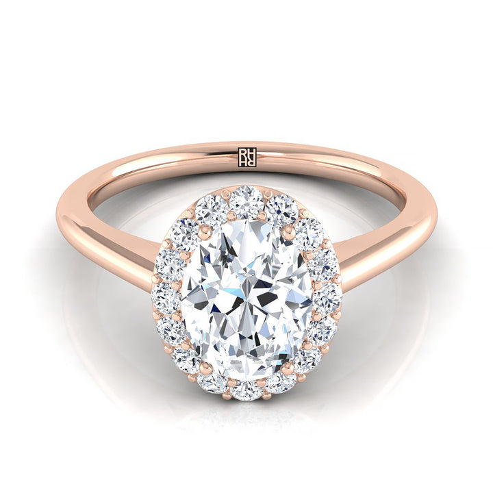 แหวนหมั้นแบบวงแหวนโฮโลรูปวงรีสุดคลาสสิกนี้แสดงให้เห็นถึงเพชรเจียระไนแบบ Brilliant Cut (h-i/vs 0.20 Ctw) ที่ถูกจัดวางอย่างสวยงามในตัวเรือนทองกุหลาบ 14k แบบคลาสสิก