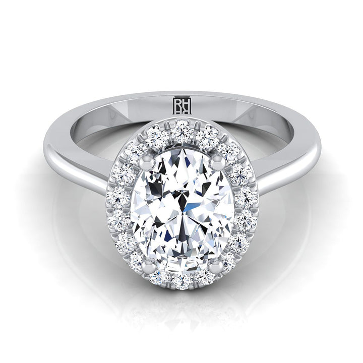 แหวนหมั้นเพชรทรงรีแพลทินัมคลาสสิกฮาโลฝรั่งเศสปาเว่ - 1/4ctw