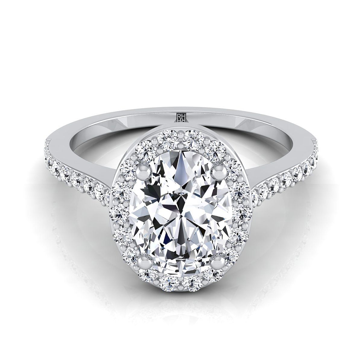 แหวนหมั้นเพชรแบบวงแหวนฝรั่งเศสคลาสสิกรูปวงรีทองคำขาว 14K ประดับเพชรแบบพาเว่และเส้นตรง - 1/3 กะรัตรวม