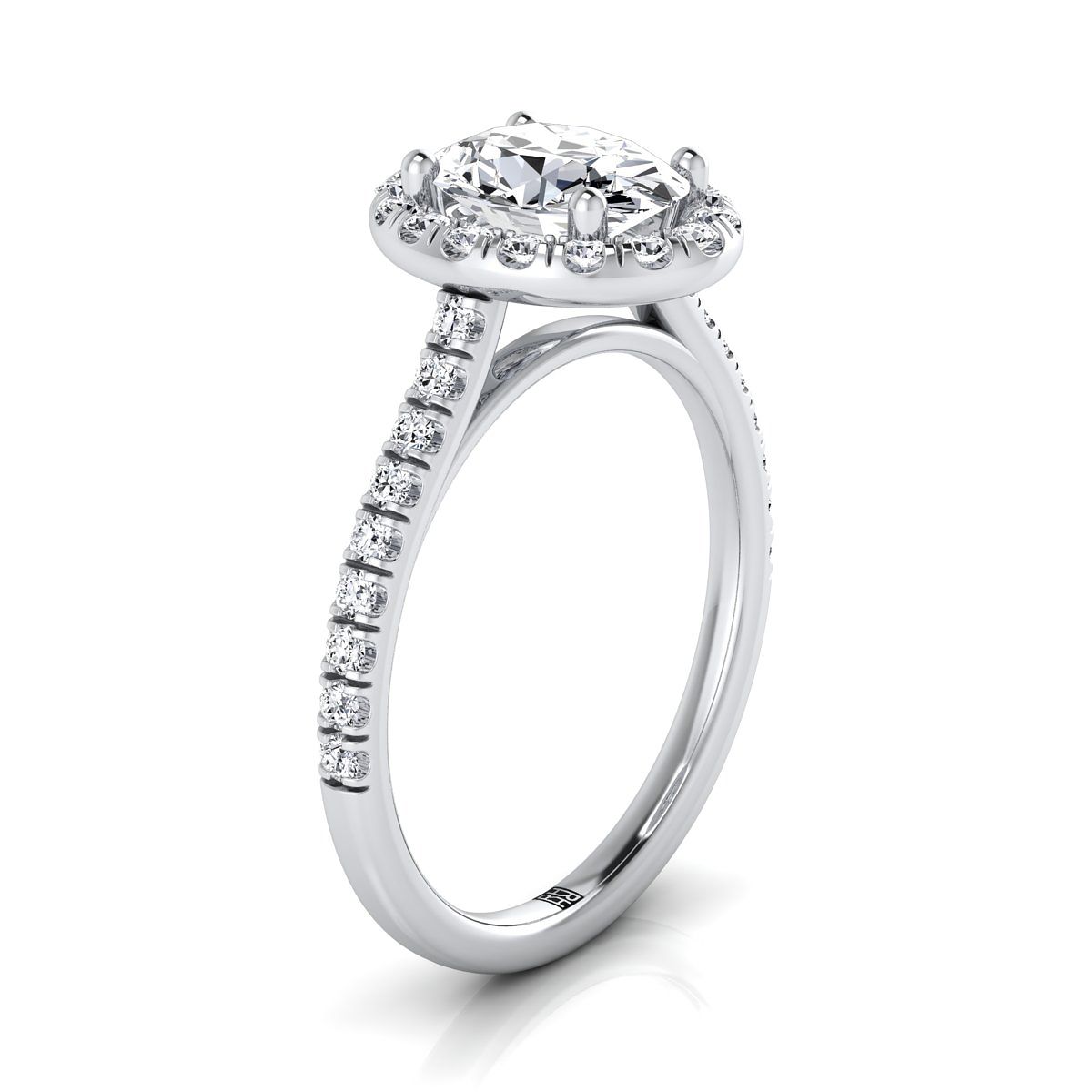 แสดงสไตล์อย่างสง่างาม แหวนหมั้นรูปวงรีแบบ Halo นี้พร้อมกับเพชรประดับแบบ Pave Shank โชว์เพชรเจียระไนแบบ Brilliant Cut (h-i/vs 0.40ctw) ที่ประดับอย่างสวยงามในตัวเรือนทองคำขาว 14k แบบคลาสสิก