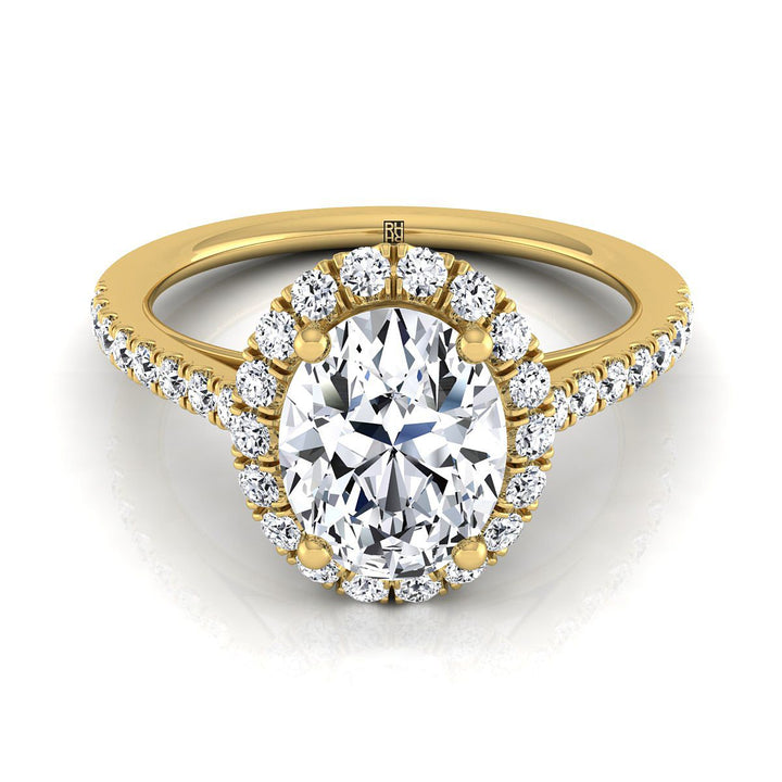 แหวนหมั้นเพชรทรงรีขนาดเล็กแบบฮาโลว์ฝรั่งเศสประดับเพชร 14K ทองเหลือง 3/8 กะรัตรวม