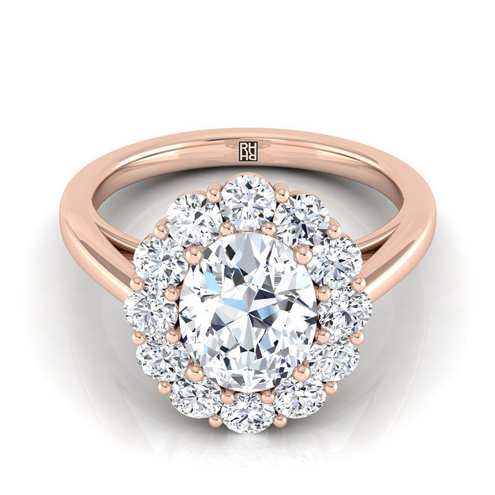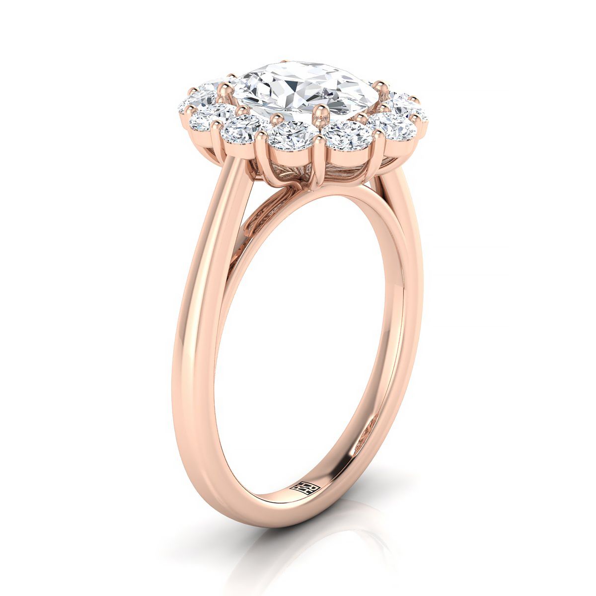 แหวนหมั้นเพชรรูปวงรีล้อมดอกไม้ทองคำชมพู 14K - 3/4ctw