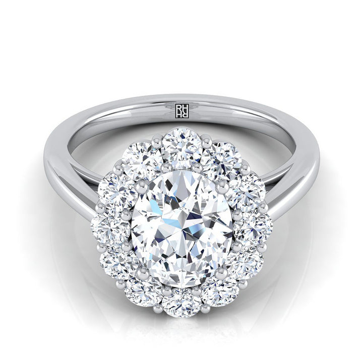 แหวนหมั้นเพชรทรงรีล้อมดอกไม้ทองคำขาว 18K - 3/4ctw