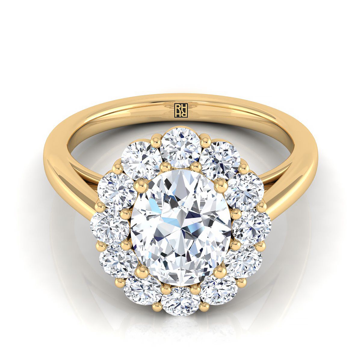 แหวนหมั้นประดับเพชรวงรีล้อมดอกไม้ทองคำเหลือง 18K - 3/4ctw