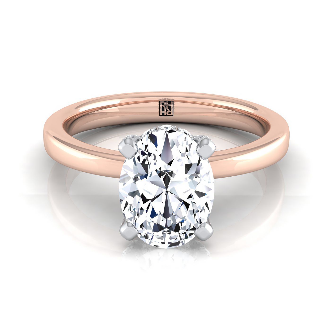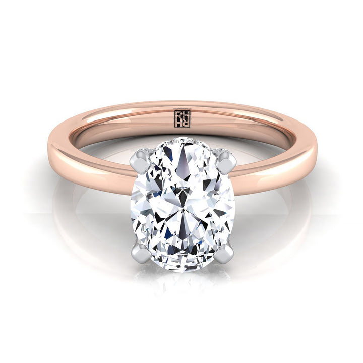 แหวนหมั้นเดี่ยวมงกุฎตะกร้าซ่อนเพชรแบบปาเว่รูปไข่ทองกุหลาบ 14K น้ำหนักเพชรรวม 1/10 กะรัต