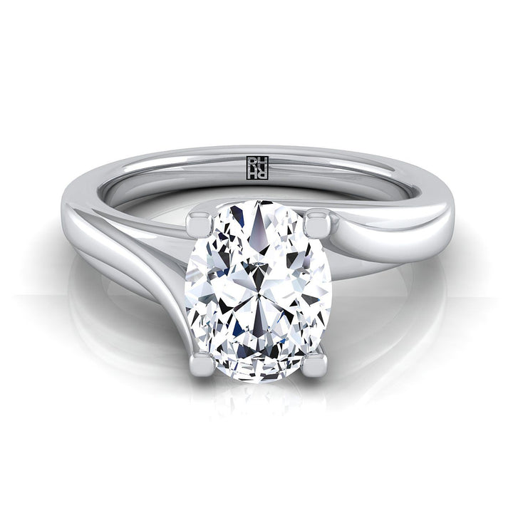แหวนหมั้นเดี่ยวแบบบิดไขว้รูปวงรีทองคำขาว 18K
