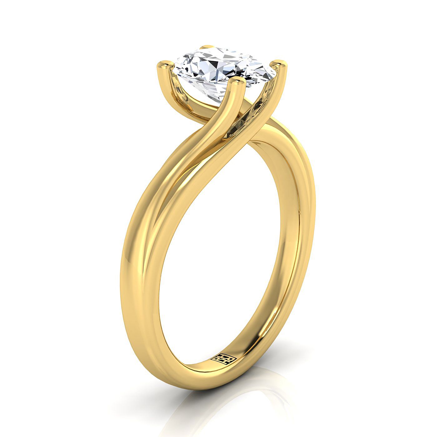 แหวนหมั้นเดี่ยวแบบบายพาสบิดเกลียวรูปวงรีทองคำเหลือง 18K