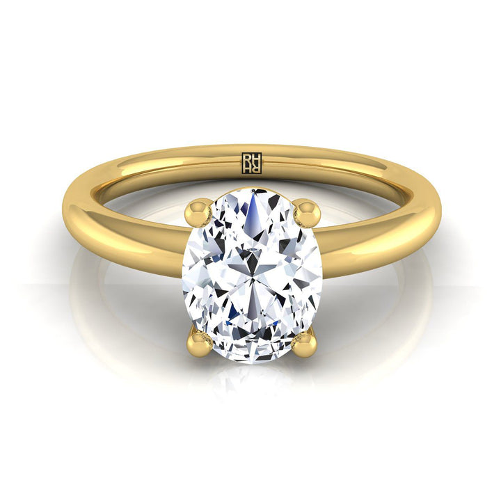 แหวนหมั้นเดี่ยวทรงรีแบบโค้งสวมใส่สบายทองคำเหลือง 14K