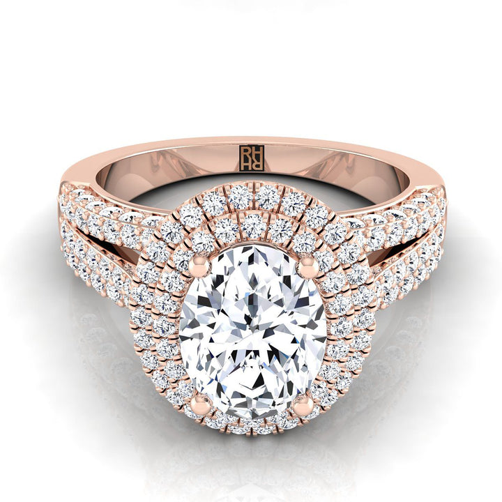 แหวนหมั้นมงกุฎฮาโล่เพชรสามชั้นรูปวงรีพิเศษทองกุหลาบ 14K - 7/8ctw
