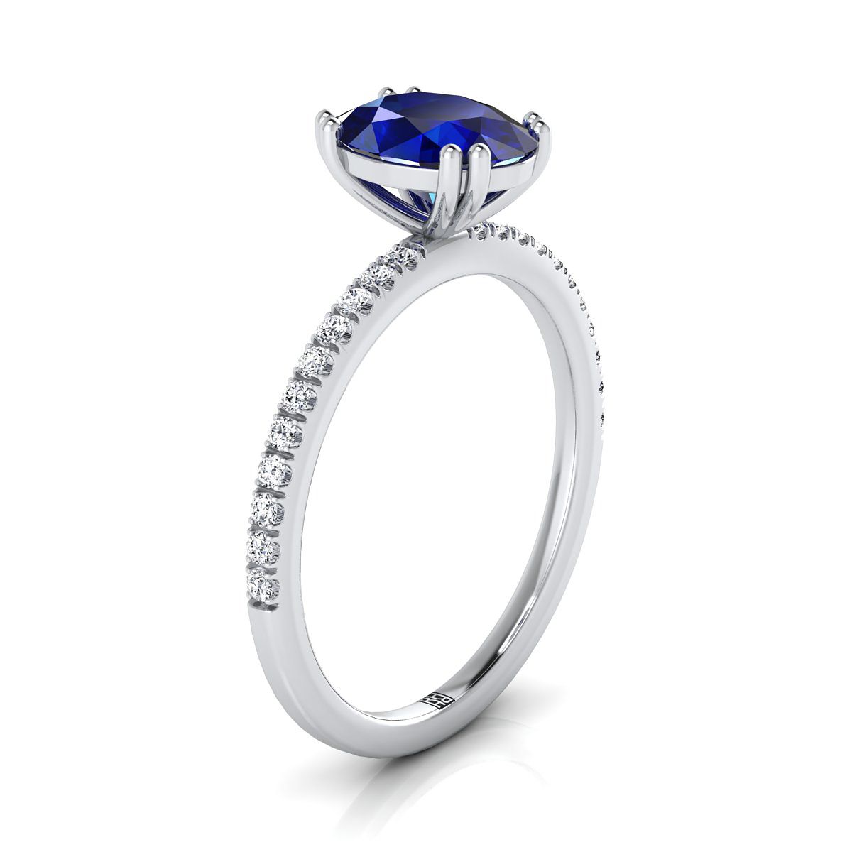 แหวนหมั้นเพชรแบบหนีบคู่ฝรั่งเศสเรียบง่ายประดับแซฟไฟร์รูปวงรีทองคำขาว 14K - 1/6ctw