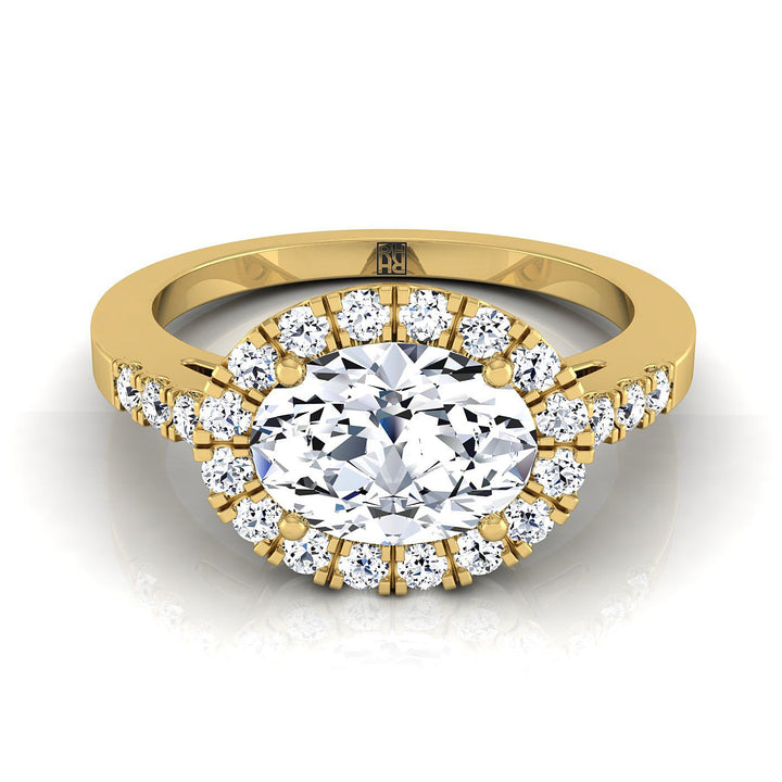 แหวนหมั้นเพชรทรงรีสีเหลืองทอง 18K แบบแนวนอน ดีไซน์แฟนซี อีสต์ เวสต์ ฮาโล - 1/3 กะรัตรวม