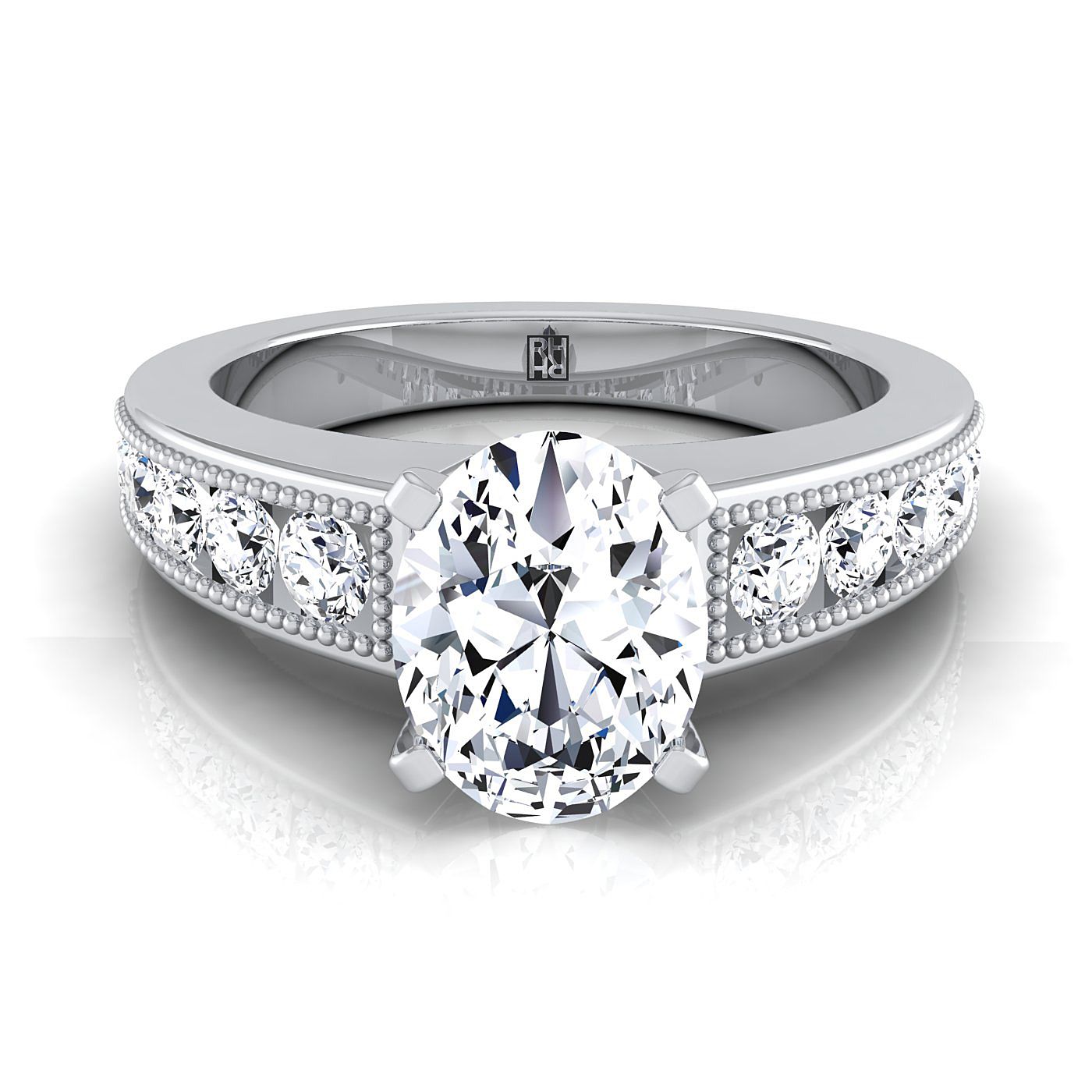 แหวนหมั้นทองคำขาว 14K รูปไข่ ประดับเพชร สไตล์โบราณ มิลเกรน บีด และเซ็ตช่อง - 1/2ctw