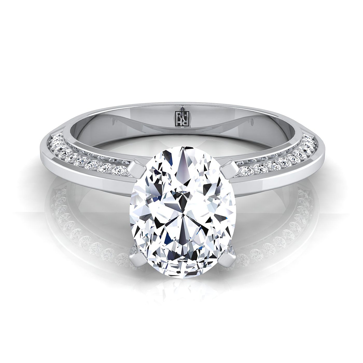แหวนหมั้นเพชรทรงวงรีคลาสสิกพร้อมแหวนเพชรเจียระไนแบบ Brilliant Cut (h-i/vs 0.20ctw) ที่ประดับอย่างสวยงามในตัวเรือนทองคำขาว 14k ที่สง่างาม พร้อมแกลเลอรีแบบขอบมีด