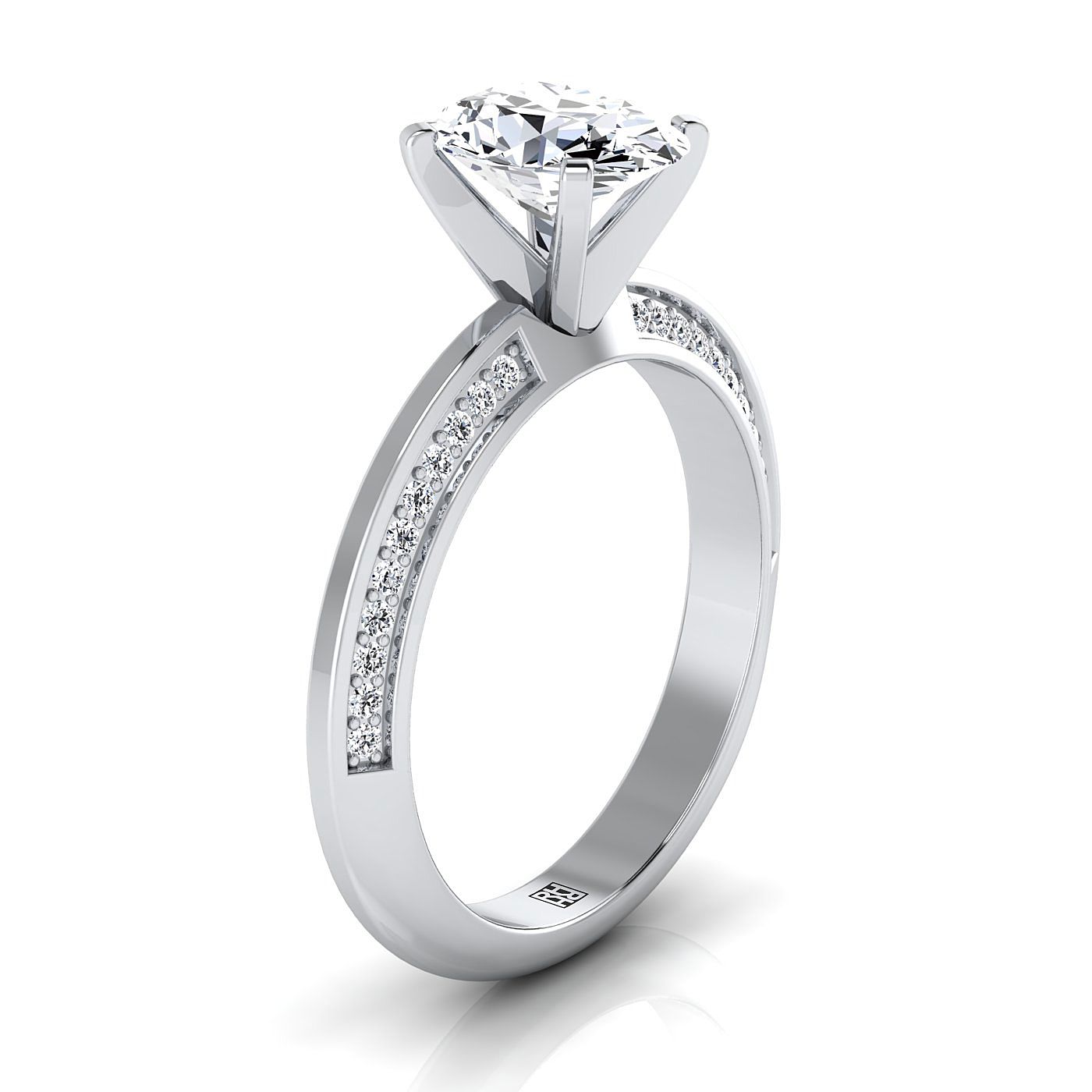 แหวนหมั้นเพชรรูปไข่ขอบมีดไมโครเพฟทองคำขาว 14K - 1/5 กะรัตรวม