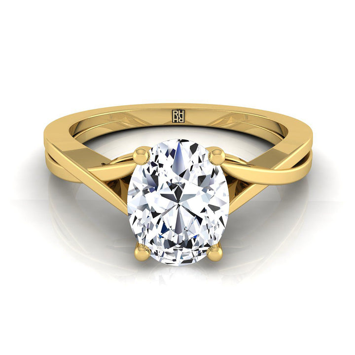 แหวนหมั้นเดี่ยวบิดเกลียวบางรูปวงรีทองคำเหลือง 14K