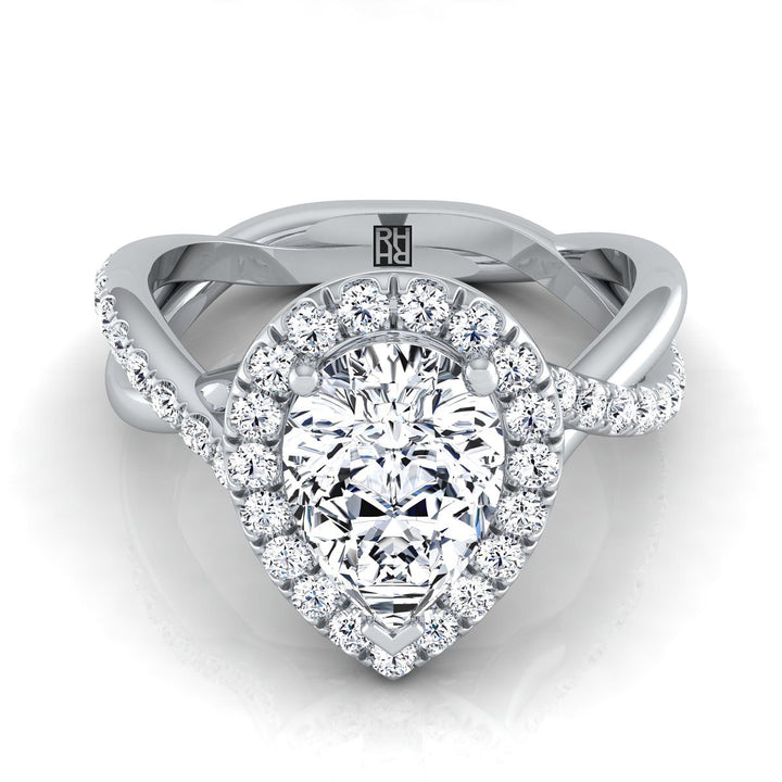 แหวนหมั้นทองคำขาว 18K รูปทรงลูกแพร์ เพชรเม็ดกลาง พร้อมล้อมด้วยลวดลายเถาวัลย์บิด - 1/2 กะรัตรวม