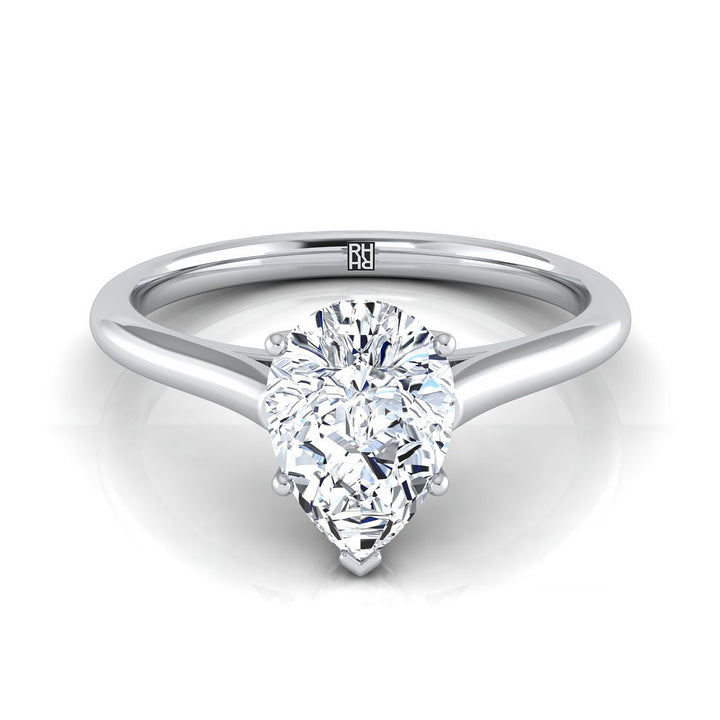 แหวนหมั้นเดี่ยวทรงลูกแพร์กลางทองคำขาว 18K สไตล์วิหาร ใส่สบาย
