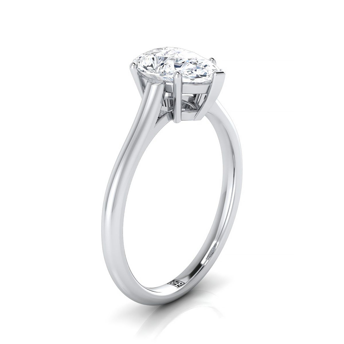 แหวนหมั้นเดี่ยวทรงลูกแพร์เพชรพลาตินัมแบบคอมฟอร์ตฟิตสไตล์วิหารกลาง