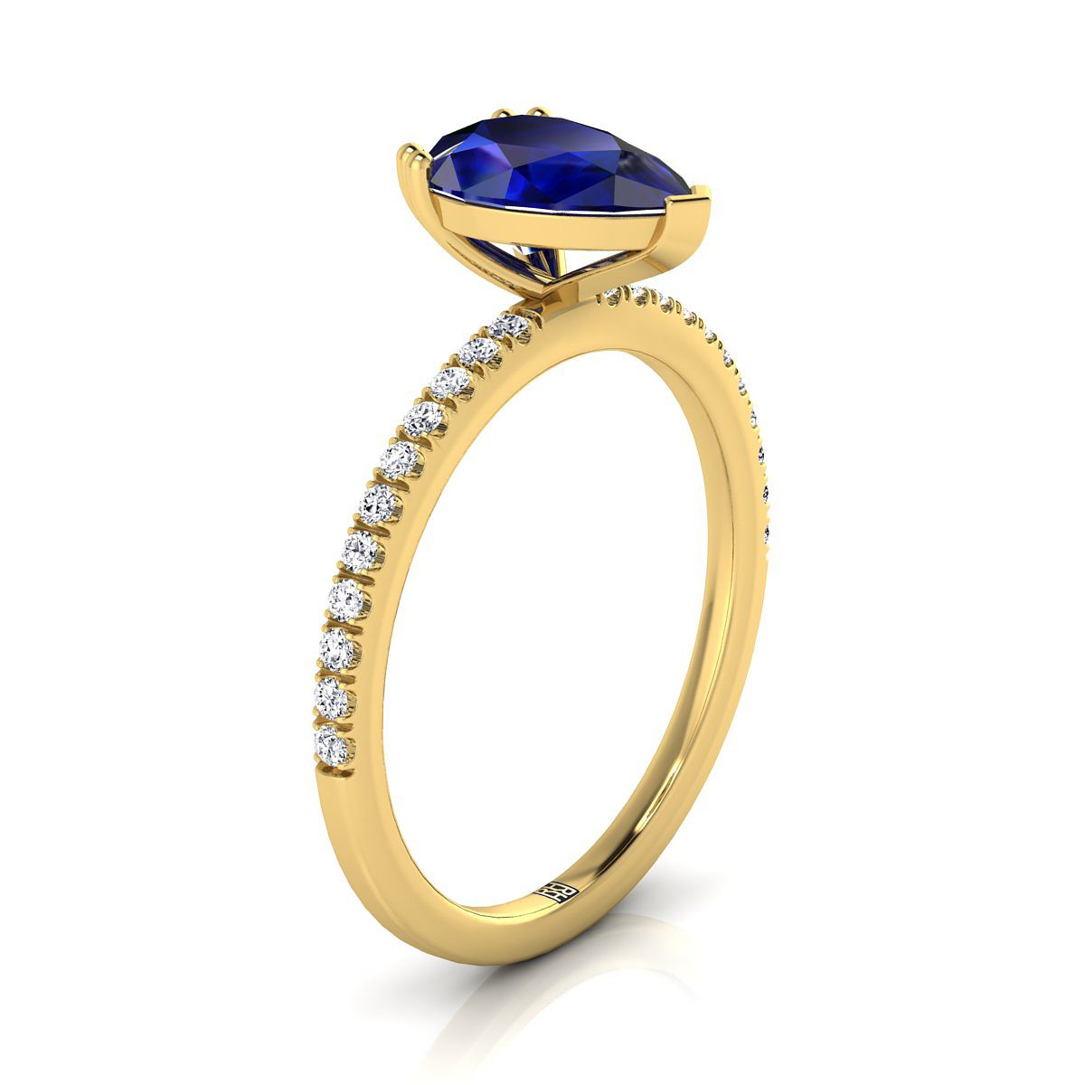แหวนหมั้นเพชรแบบหนีบคู่ฝรั่งเศสเรียบง่ายประดับไพลินทรงลูกแพร์ตรงกลางทองคำเหลือง 18K - 1/6ctw