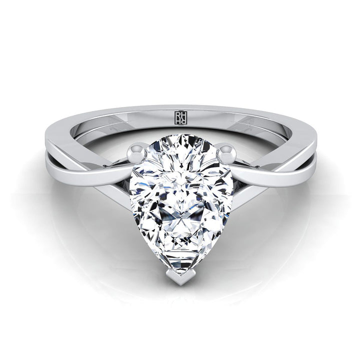 แหวนหมั้นเดี่ยวดีไซน์บิดประณีตประดับเพชรรูปทรงลูกแพร์ทองคำขาว 18K