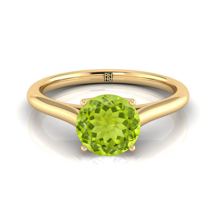 แหวนหมั้นเดี่ยวแบบสไตล์วิหาร ประกอบด้วยเพอริดอตทรงกลมเจียระไนแบบบริลเลียนต์ สีทองเหลือง 14K แบบสวมใส่สบาย