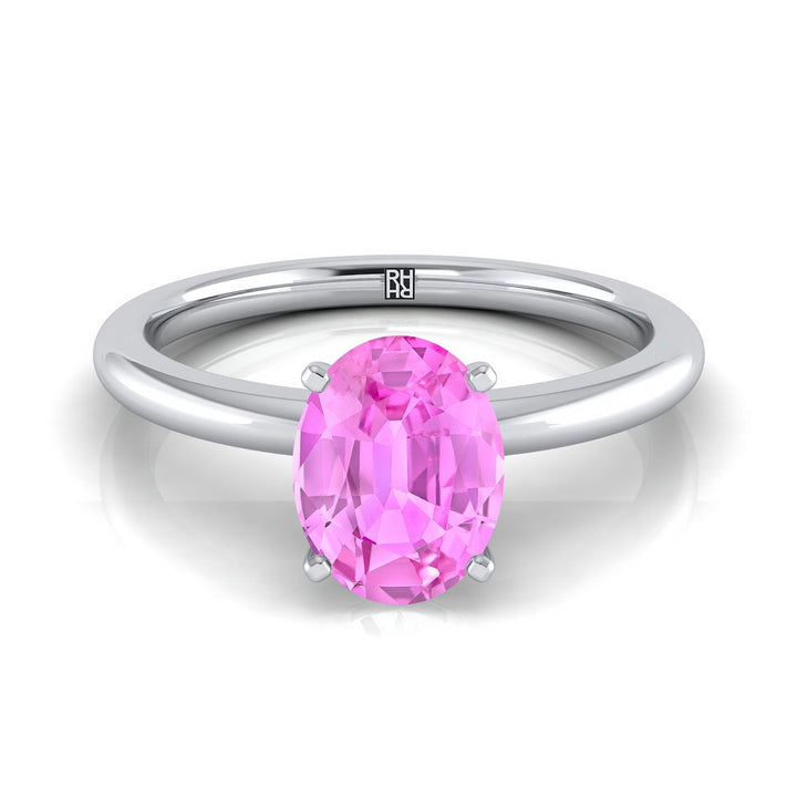 แหวนหมั้นเดี่ยวแบบหนีบก้ามปูทรงกลม ดีไซน์สวมใส่สบาย ประกอบด้วยแซฟไฟร์สีชมพูรูปวงรีทองคำขาว 14K