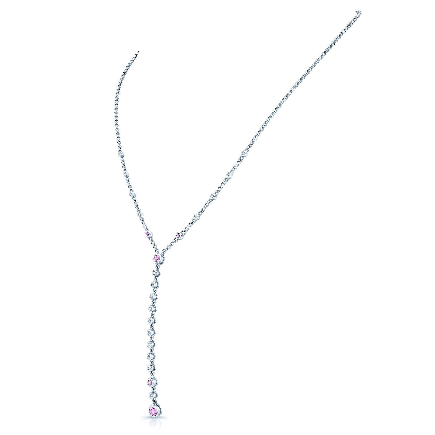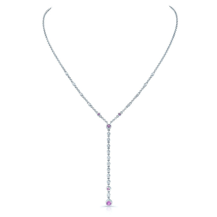 สร้อยคอ Y ประดับแซฟไฟร์สีชมพูและเพชรในทองคำขาว 14 กะรัต (1/5 กะรัตรวม)