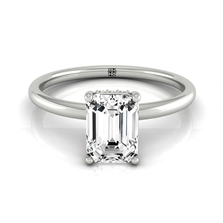 แหวนหมั้นเพชรเดี่ยวมรกตแพลทินัมพร้อมฮาโลซ่อนด้านบนและเพชรรูปกลม 16 เม็ดแบบหนีบ